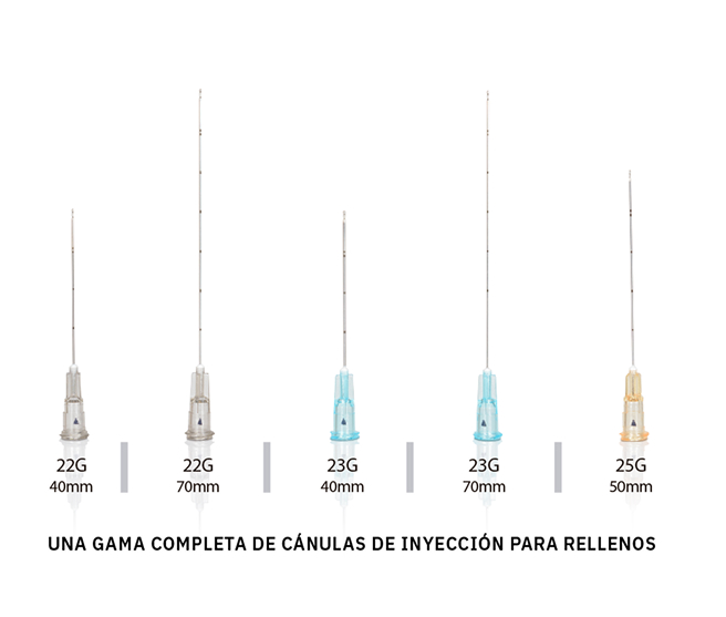 Orificio lateral de salida del producto fácilmente localizable durante la inyección.